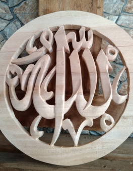 Ukiran kaligrafi lafadz allah dengan ukuran deameter 30 cm x 30 cm tebal kayu 2 cm bahan kayu mahoni produk sudah di amplas halus. Cocok untuk hiasan dinding.